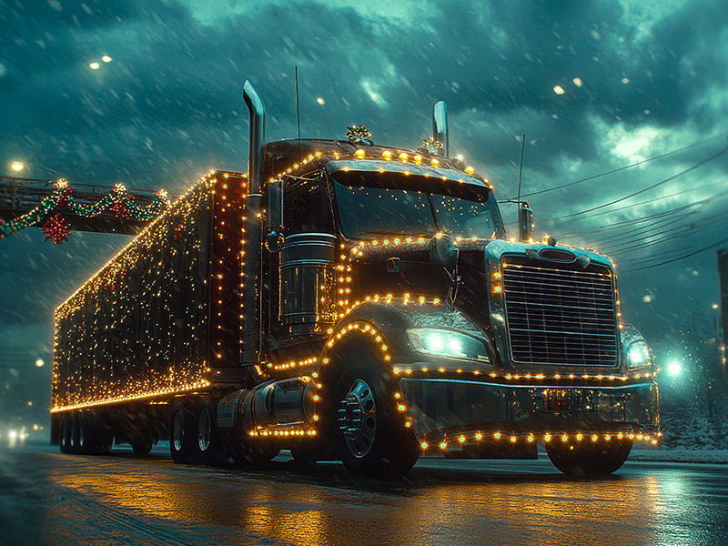 A long-haul driver has found a genius loophole for spreading holiday cheer (and a little chaos): covering his entire truck and trailer in flashing, synchronized Christmas lights – then claiming they’re “DOT-approved emotional support lighting” under the new mental wellness initiative.