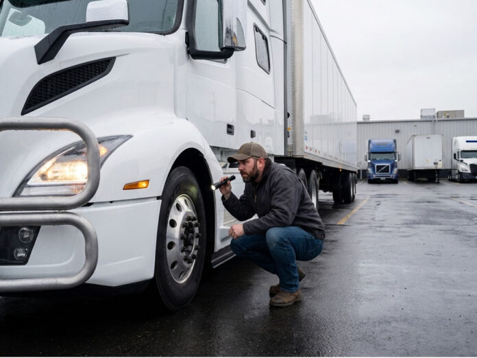 Truck stop parking lots have turned into informal inspection zones, with drivers walking slow circles around their trucks, crouching near tires, and testing lights multiple times to confirm results they already saw once.